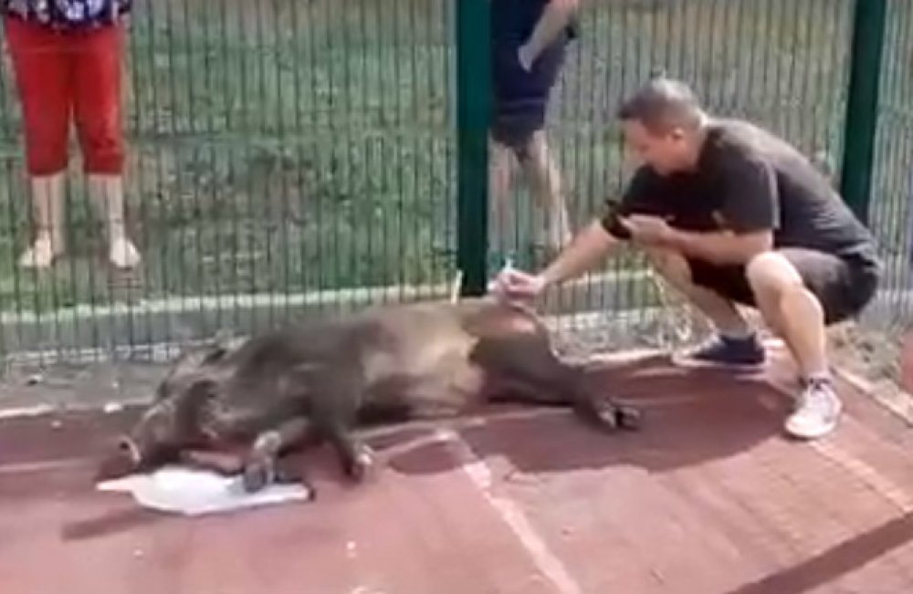 На территорию спортивной площадки лицея №7 Оренбурга забрел дикий кабан. Сотрудники образовательного учреждения сообщили о не званном госте в полицию и администрацию. Прибывшие на место специалисты усыпили животное, чтобы в дальнейшем отпустить его в естественную среду обитания. Правда, сделать укол получилось лишь с третьей попытки.