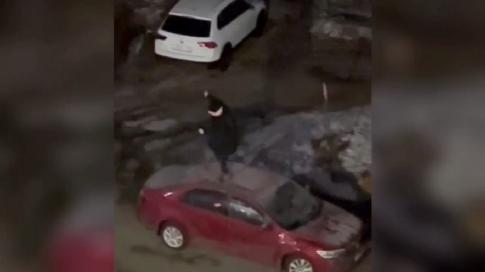 Парень начал прыгать на крыше иномарки