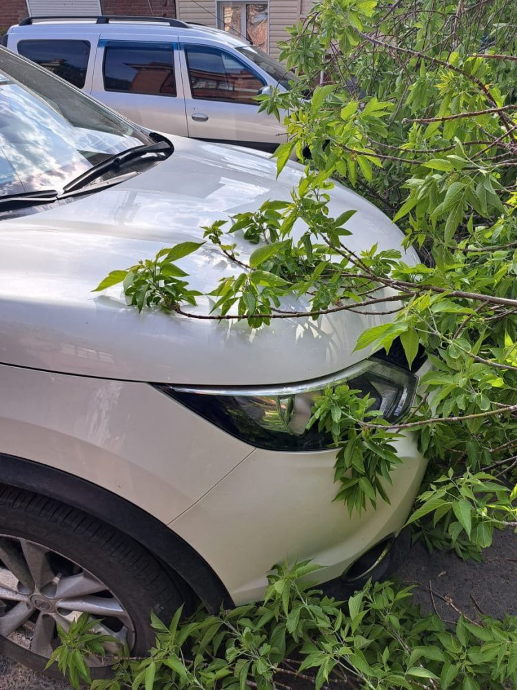 В Оренбурге упавшая ветка дерева повредила машины