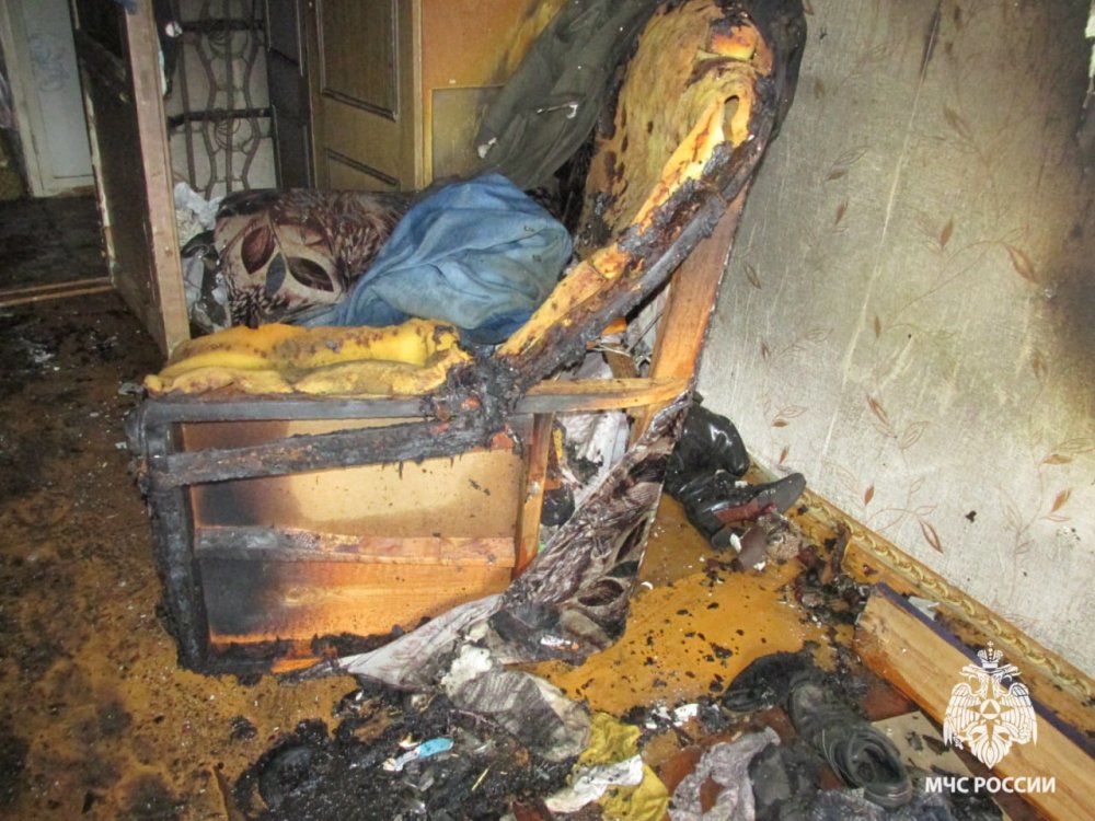 Предварительная причина возгорания - непотушенный окурок. Пожар тушили бойцы 13 ПСЧ. Погибших и травмированных нет.