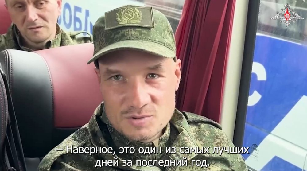 Минобороны публикует кадры из автобуса, в котором едут осовбожденные ребята. Они делятся своим эмоциями.