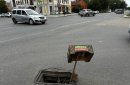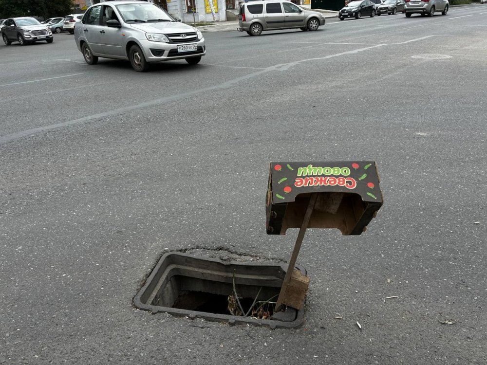 Сначала это была просто поврежденная решетка ливневой канализации. Потом ее разбили окончательно, и получилась идеальная западня. Теперь над дырой соорудили сложную конструкцию — читатель, приславший нам фото, предполагает, что это памятник яме.