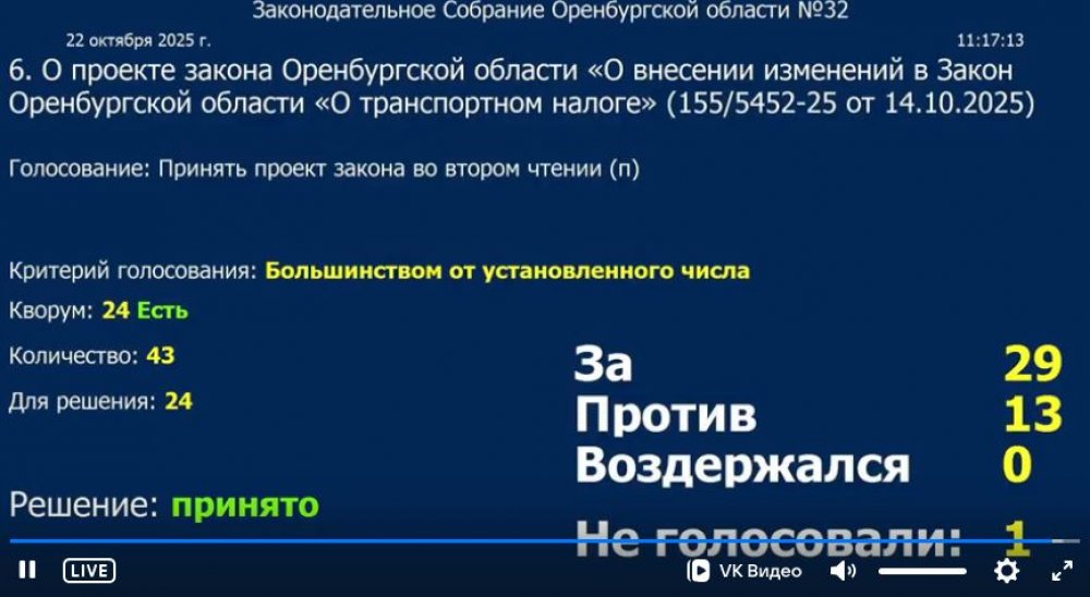 22 октября 2025 года депутаты Законодательного собрания Оренбургской области приняли поправки к региональному закону «О транспортном налоге».