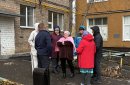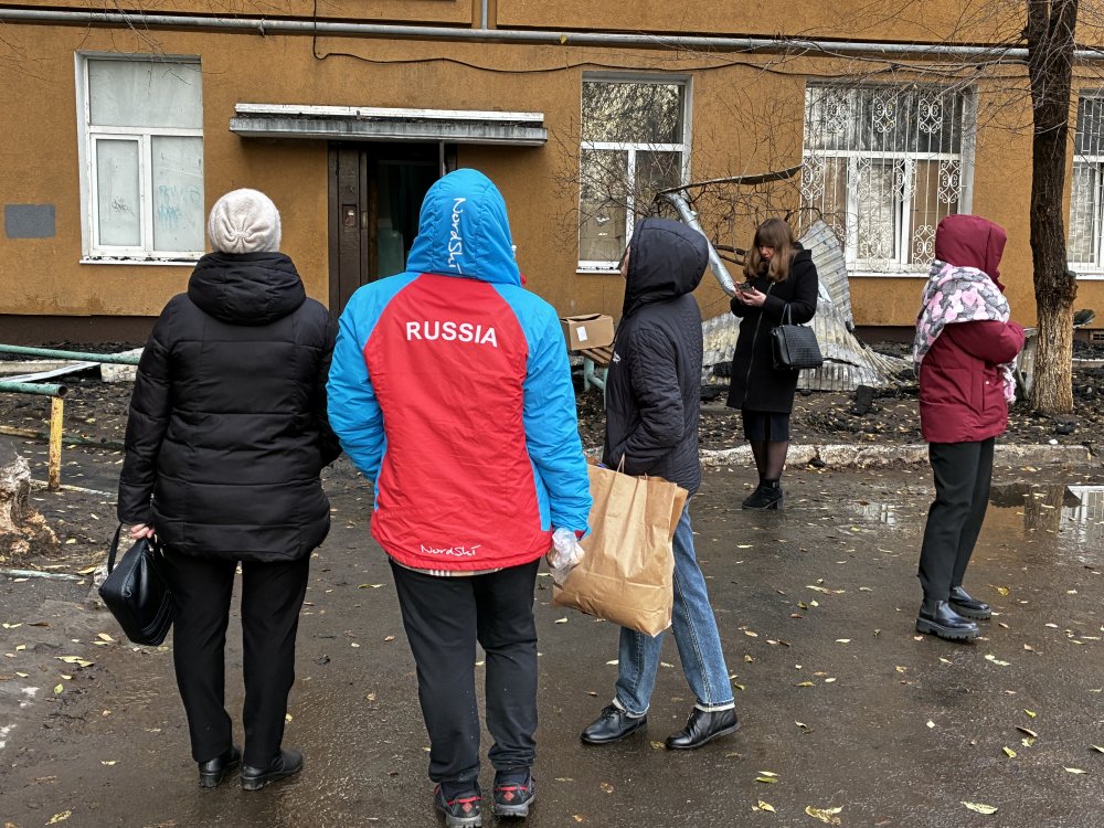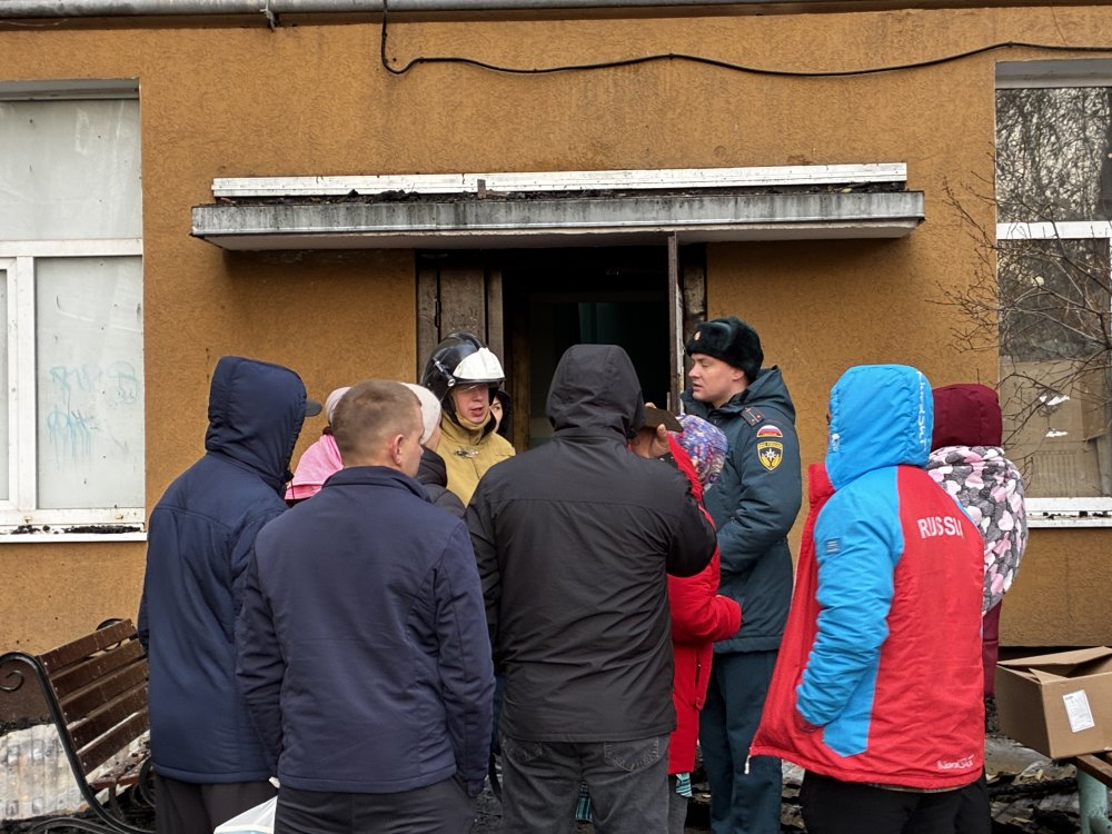 Пожар в пятиэтажке, расположенной в переулке Больничном, потушен, но жильцов пока не пускают в свои квартиры. Они собираются на площадке перед домом и ждут встречи с представителями городской администрации.