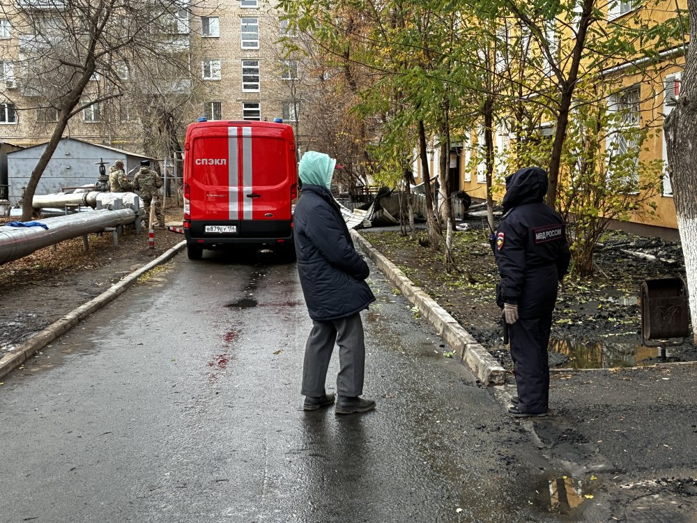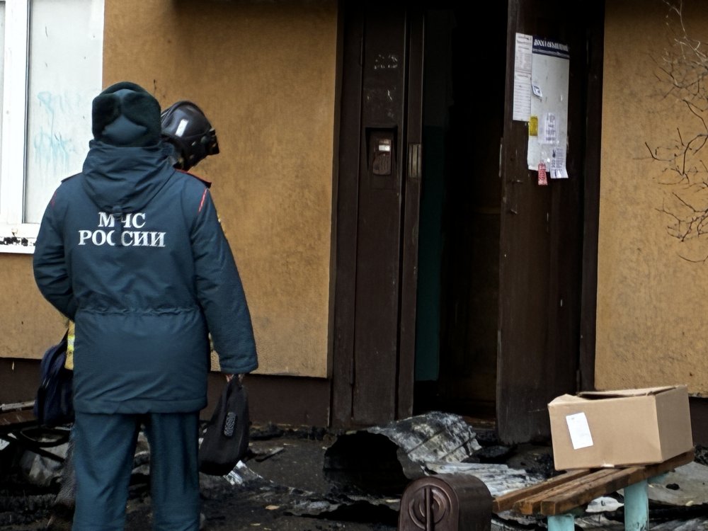 На месте работают сотрудники МЧС — дознаватель ищет владельцев квартир, расположенных на пятом этаже, чтобы вместе с ними осмотреть жилища.