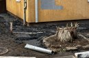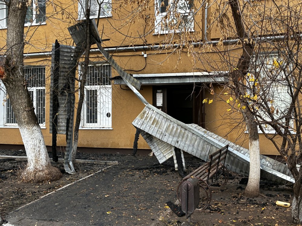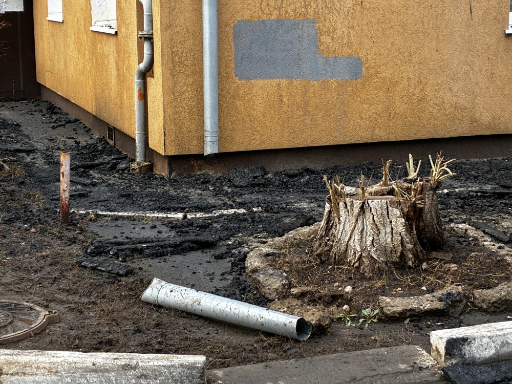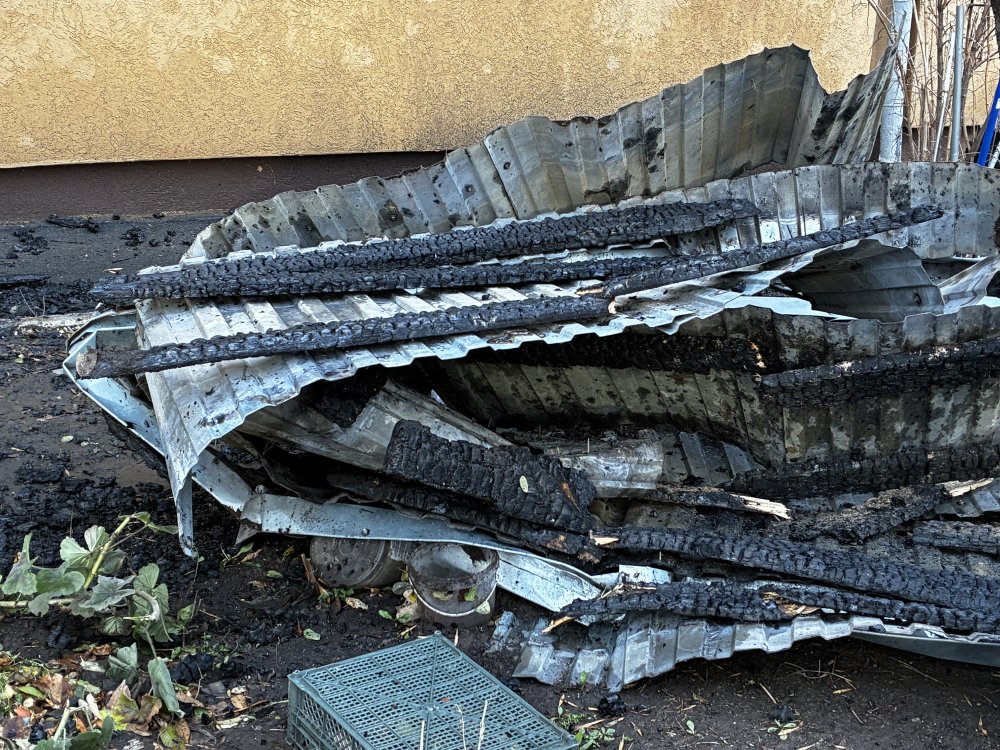 То, что пожар был очень сильным, видно по всему: вокруг дома валяются полосы покореженной от жара кровельной жести, обугленные доски. В некоторых окнах полопались стекла.