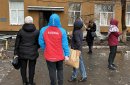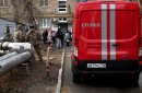 Видно, что люди покидали квартиры в спешке: на балконах висит постиранное белье. Мужчина подходит к казакам, которые помогают полицейским охранять дом. «У меня кошки там… 5 кошек». Но пройти внутрь нельзя.