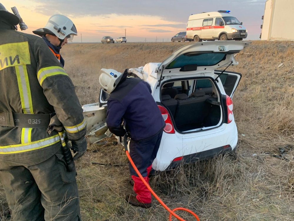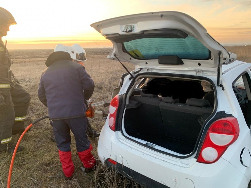 В Оренбургском районе на трассе Казань — Оренбург столкнулись «Шевроле Равон» и «Исузу». От удара «Равон» улетел в кювет.