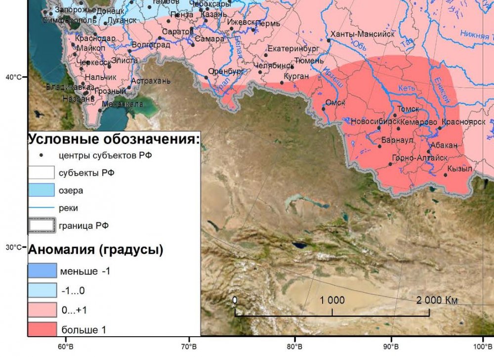 Карта температур с сайта Росгидромета