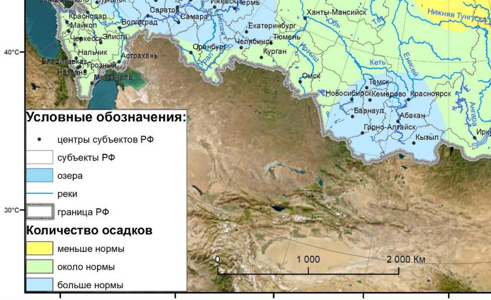 Карта осадков с сайта Росгидромета