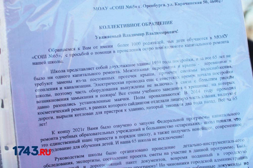 В марте (после того, как родители записали видеообращение к Путину) здание все же закрыли, а детей раскидали по другим школам, но ремонт так и не начался: Родители обратились в Следственный Комитет, но реакции, на которую они рассчитывали, не последовало: уголовное дело возбуждено не было. Тогда оренбуржцы вышли непосредственно на Александра Бастрыкина, который назначил служебную проверку и поручил уволить руководителя следственного отдела по Южному округу Оренбурга, который отказал в возбуждении уголовного дела.