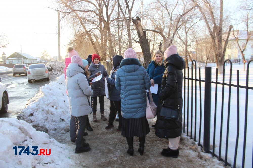 Родители у школы 65, февраль 2024 года. Фото 1743.ru