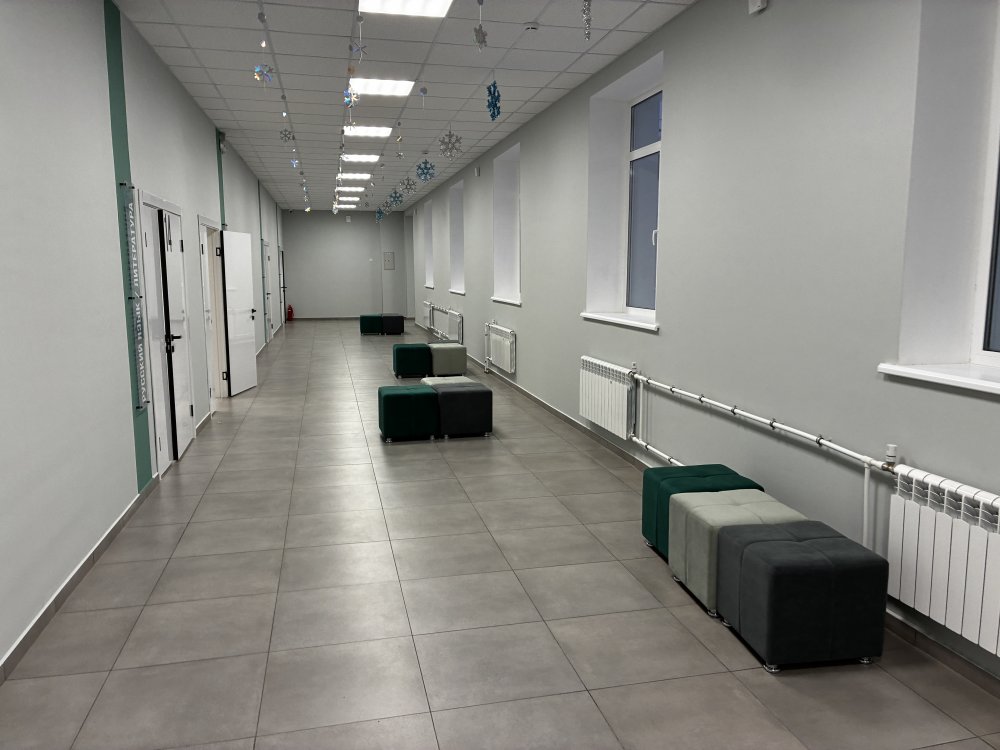 В рекреациях установлены питьевые фонтанчики и мягкие скамейки для отдыха.