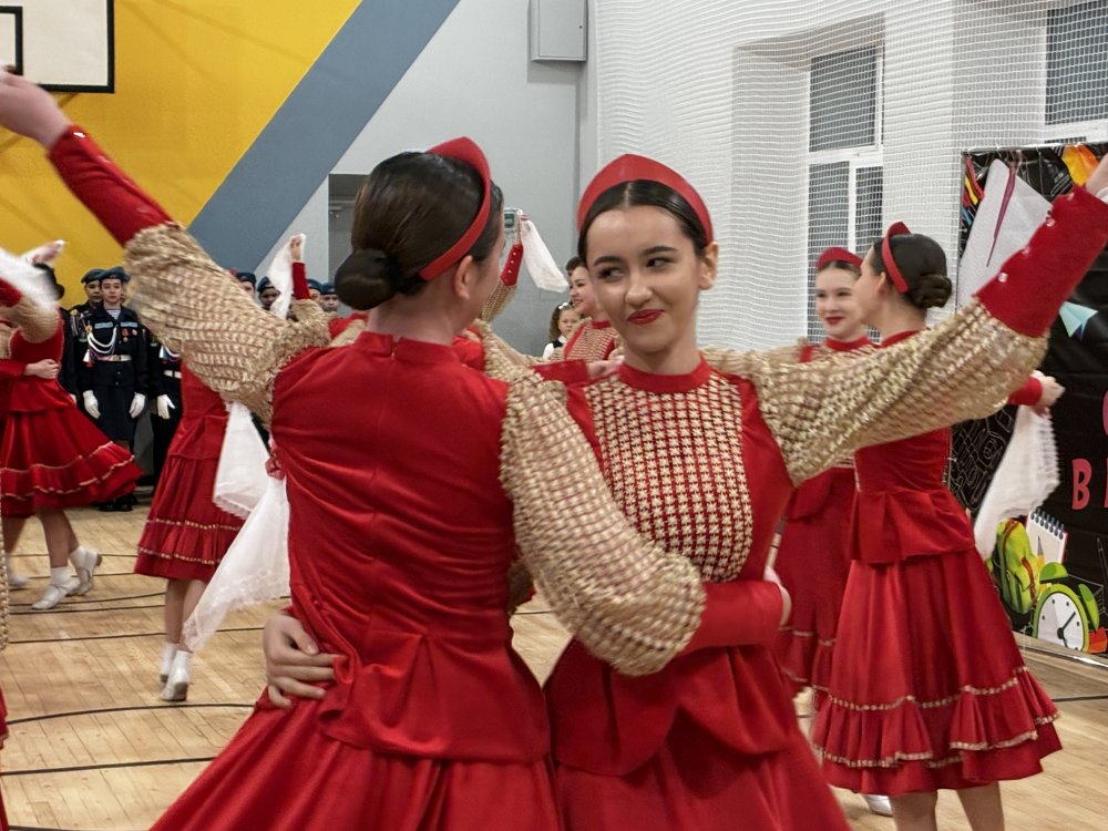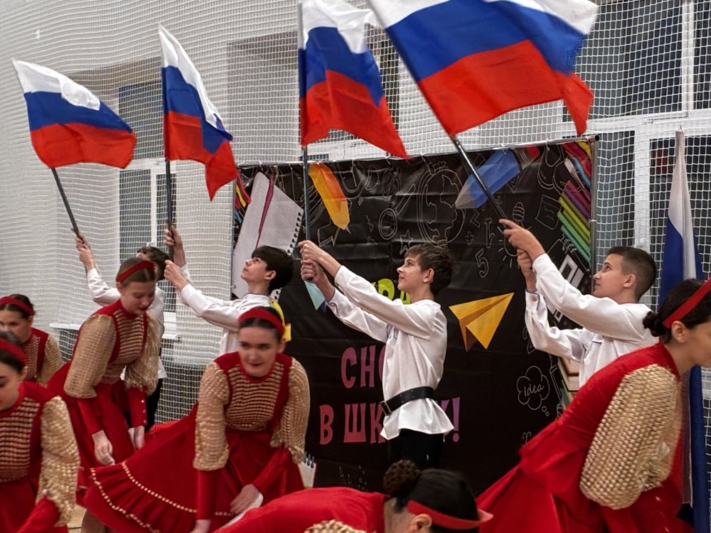Учебный день начался с торжественной линейки в обновленном спортзале. На ней, как всегда, было исполнено много творческих номеров, спето много патриотических песен.