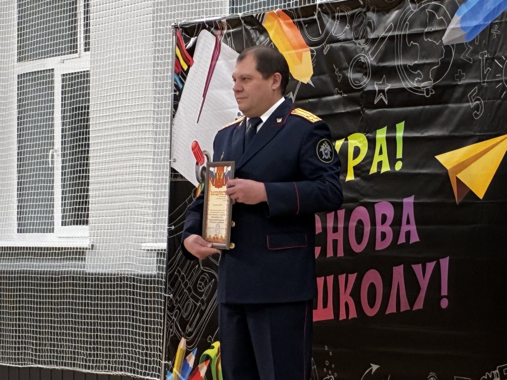 Много приятных слов было сказано на линейке в адрес «тех, кто контролировал строительство». Особо администрация школы выделяла Вячеслава Зудермана — начальника регионального управления СК РФ. Ему дали слово (полковник сказал общие слова о том, что учиться нужно на отлично, в историю вопроса углубляться не стал, но оно и понятно: праздник все-таки), а потом еще и вручили благодарность.