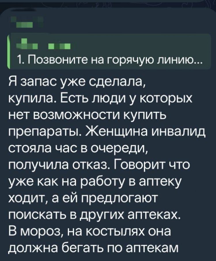 Житель Оренбурга:— Ребёнку-инвалиду дали лекарство не на три месяца, как обычно, а только на один. У всех в очереди были отказы — нет в наличии.