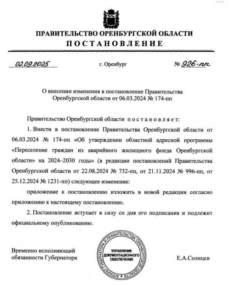 Впрочем, большой тайны здесь нет: программа переселения пересматривается постоянно, и сроки тасуются, как карты в колоде. Судя по информации, опубликованной на специальном портале, где размещаются все официальные документы органов власти, предыдущий срок расселения — до 31.12.2026 — был установлен постановлением № 926-ПП от 2 сентября 2025 года, подписанным врио губернатора Евгением Солнцевым.