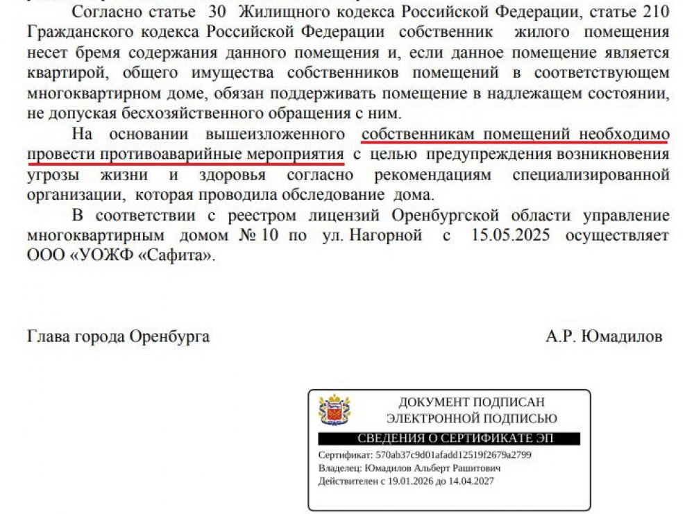 Люди снова обратились к нам. Мы составили еще один журналистский запрос в мэрию и получили ответ, на этот раз за подписью главы Альберта Юмадилова: да, переселение — до конца 2029, о 2026 году речи уже не идет. Почему его зам называл другую дату, глава комментировать не стал.