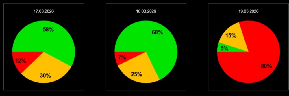18 марта существенных изменений в геомагнитной обстановке не ожидается. В течение суток Кр-индекс будет находиться в пределах 1,5–3 баллов, с минимальными значениями в утренние часы и незначительными колебаниями в течение дня. Вероятность мощной магнитной бури крайне мала и составляет 7%, вероятность слабой бури — 25%, а вероятность отсутствия активности — 68%.