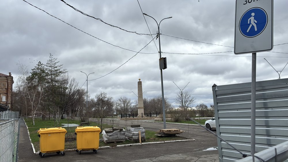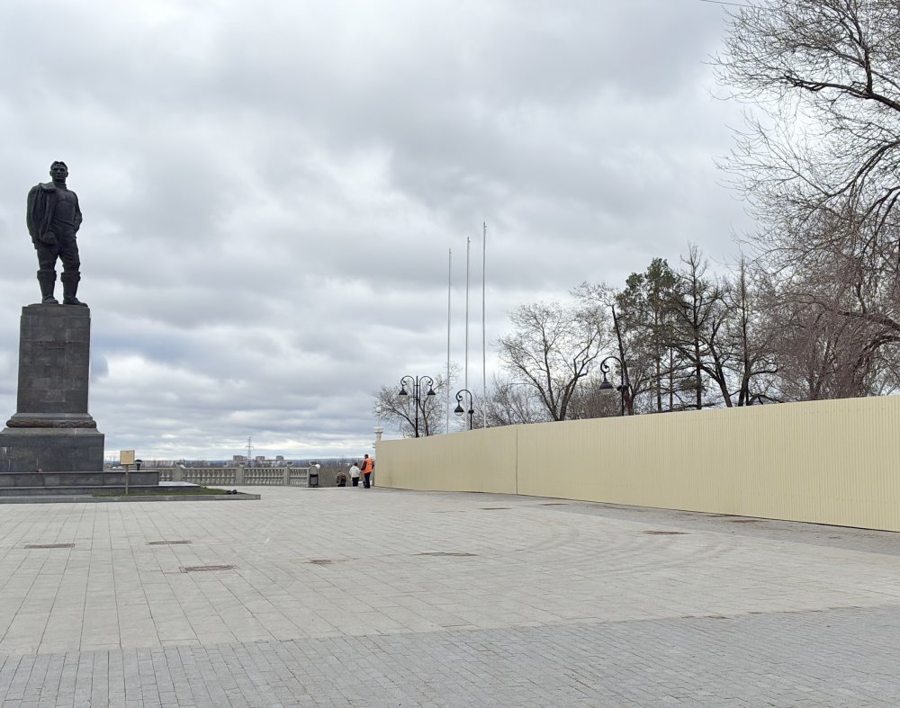 Вся площадь между памятником и храмом, зданием ФСБ и речным обрывом закрыта, там ведутся работы по благоустройству территории.