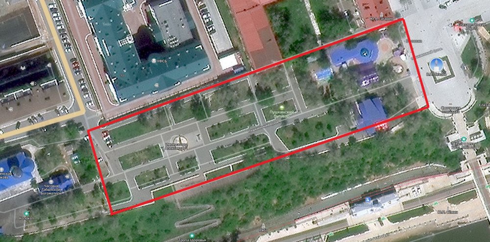 Территория, которая сейчас перекрыта (использована спутниковая карта сервиса ЯндексКарты)