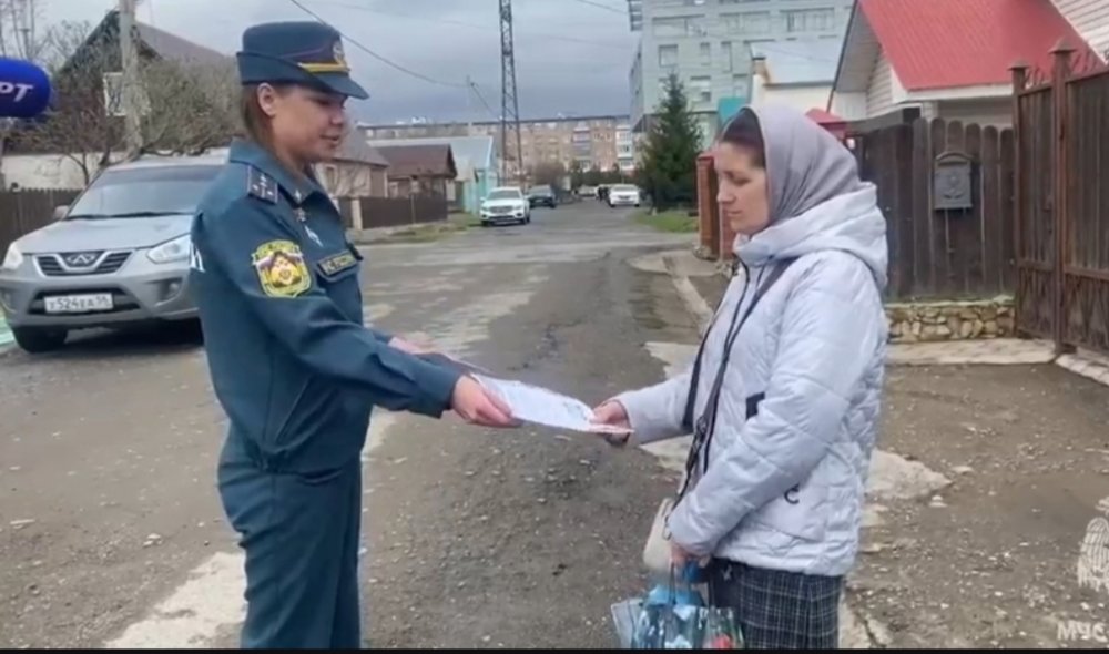Сотрудники МЧС раздали жителям частного сектора Оренбурга листовки с предупреждением о штрафах за нарушение правил пожарной безопасности. Фото: скриншот видео МЧС по Оренбургской области.