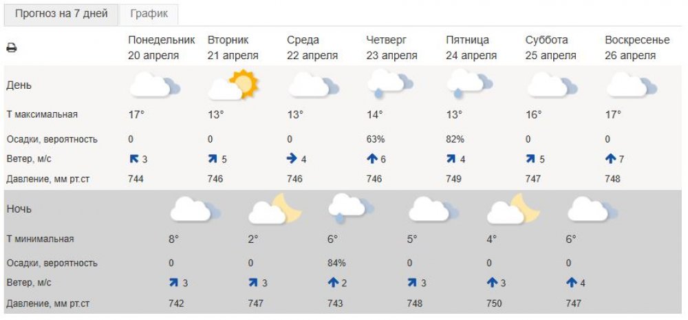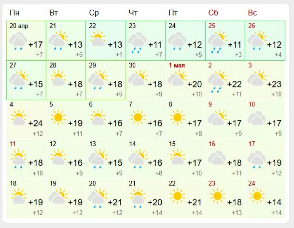 Если верить сайту Gismeteo, небо будет пасмурным вплоть до 4 мая.
