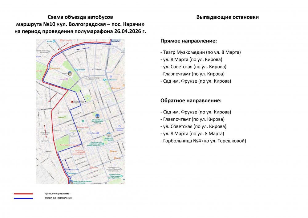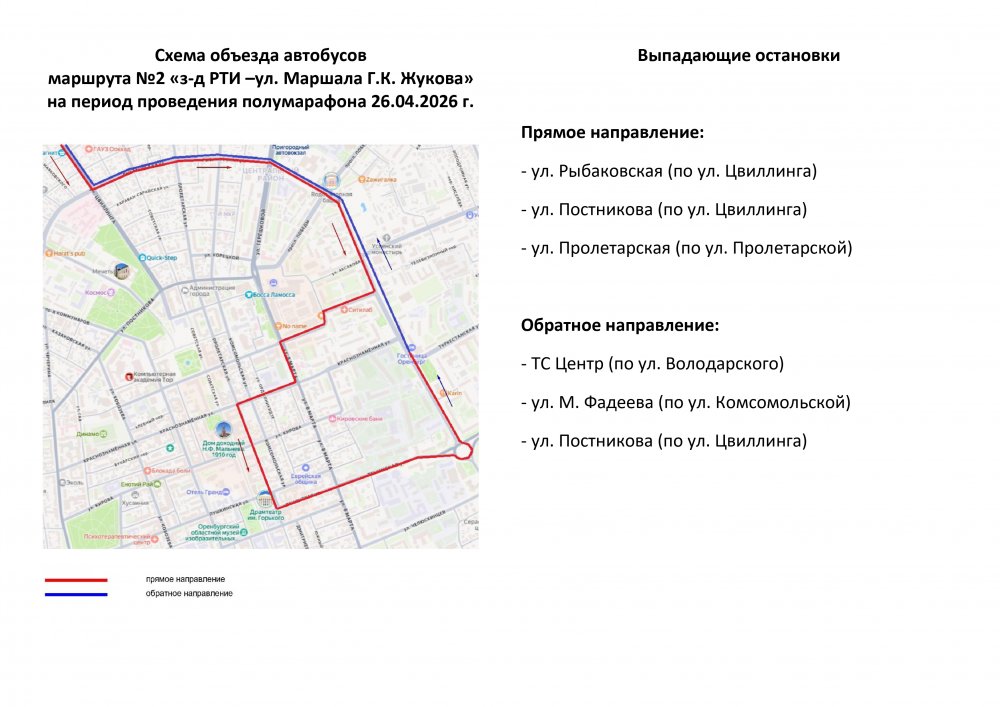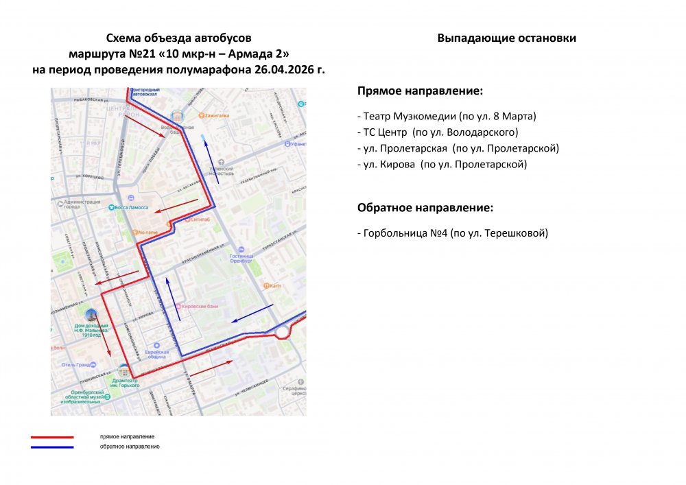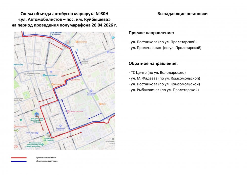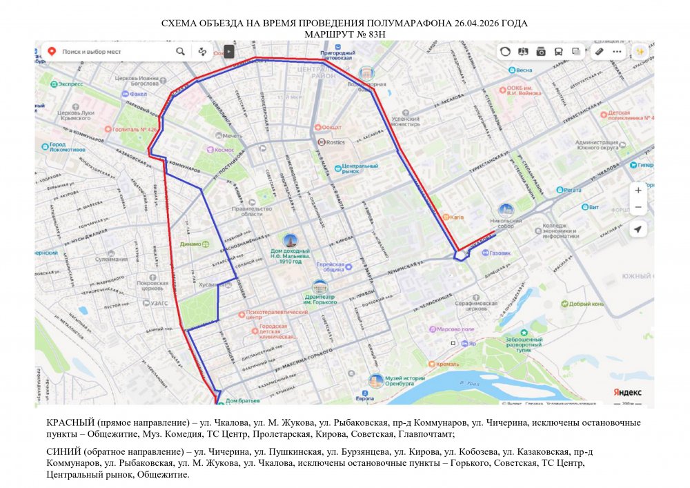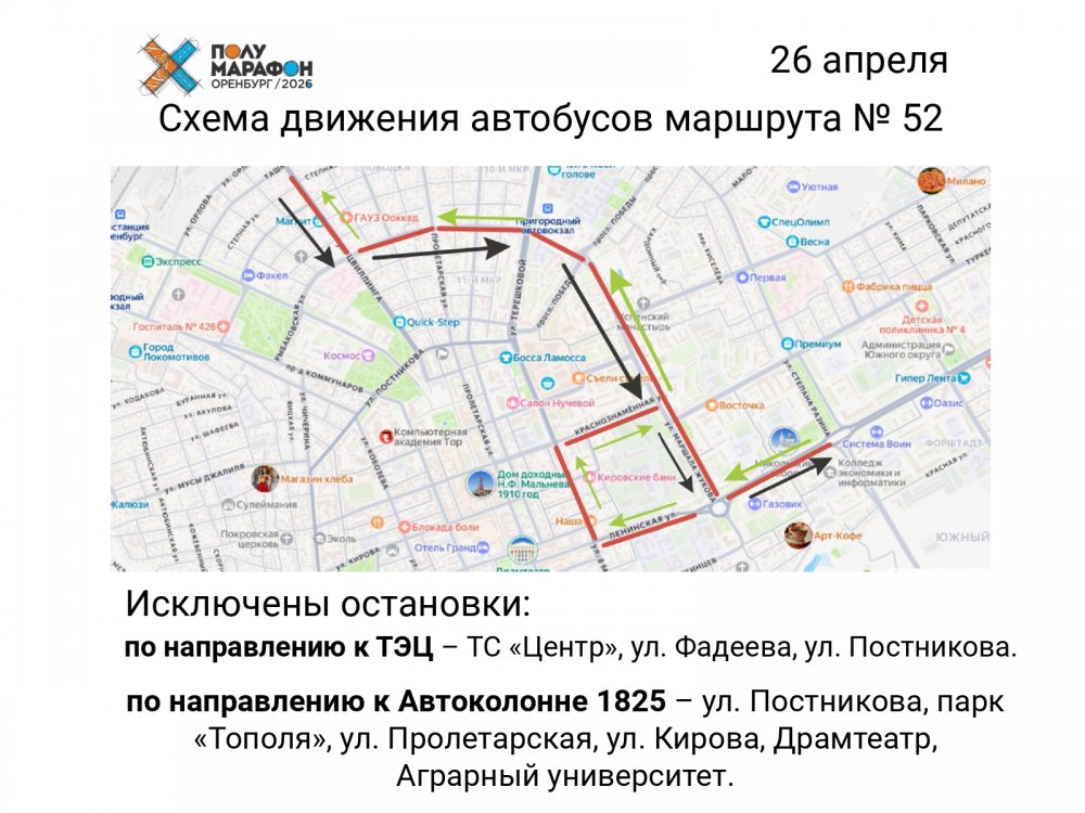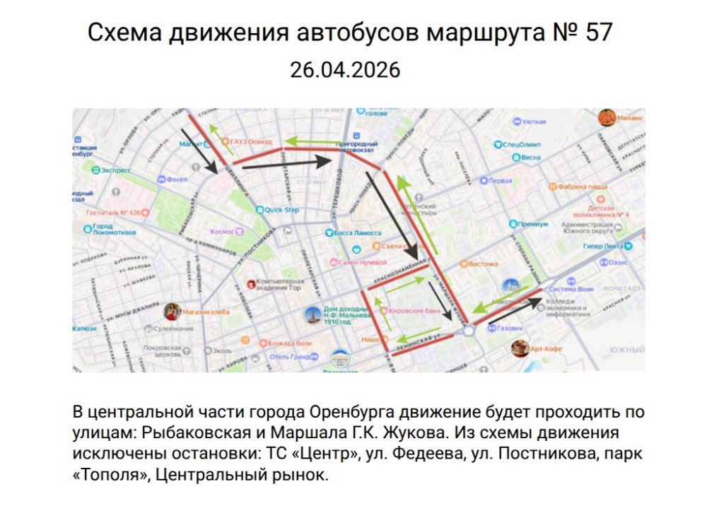 Изменение схемы движения общественного транспорта на 26 апреля от администрации города Оренбурга