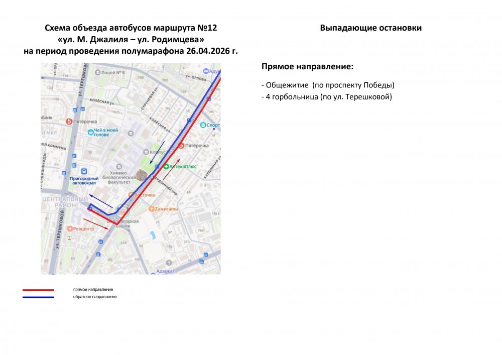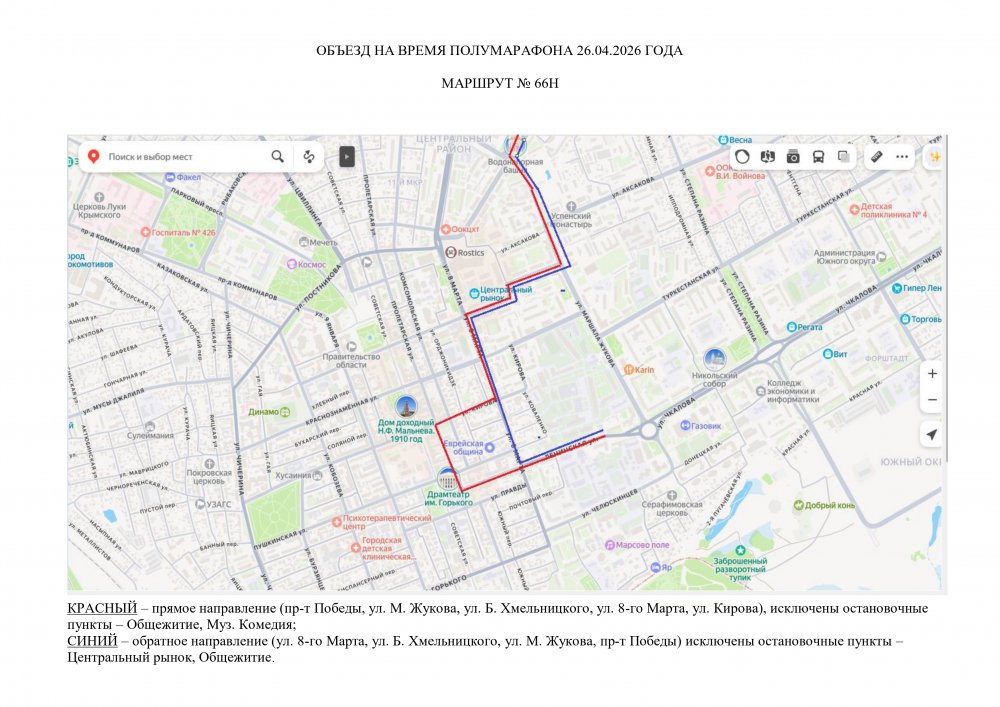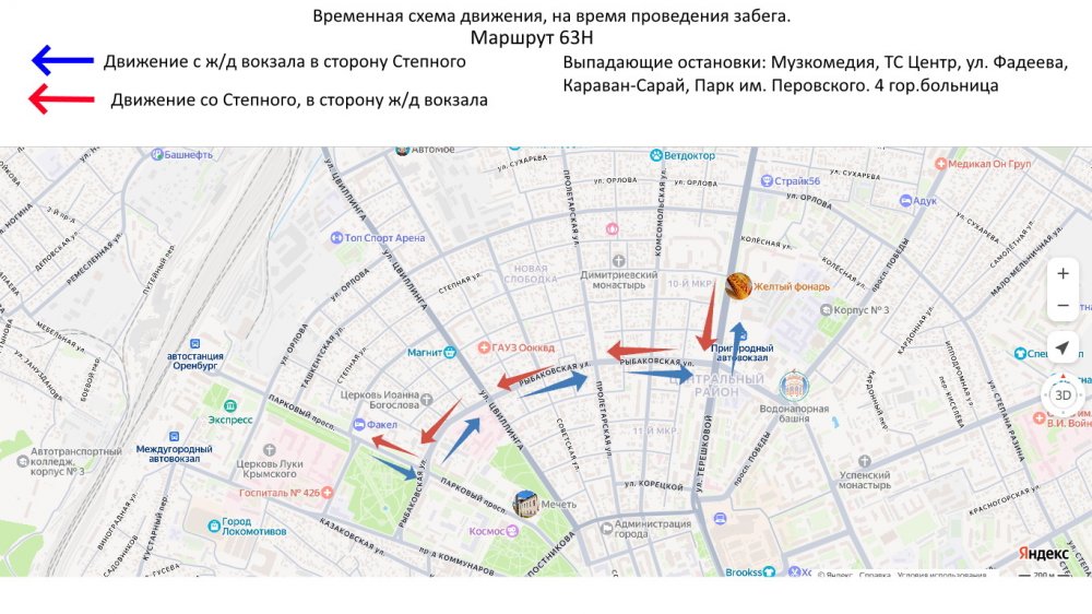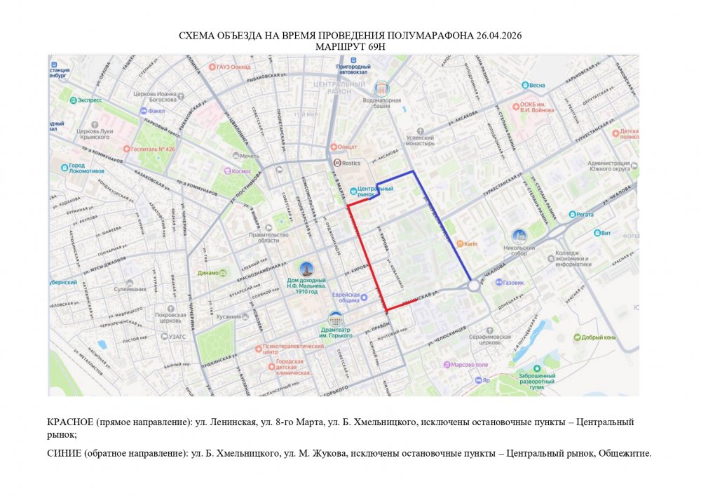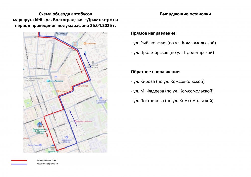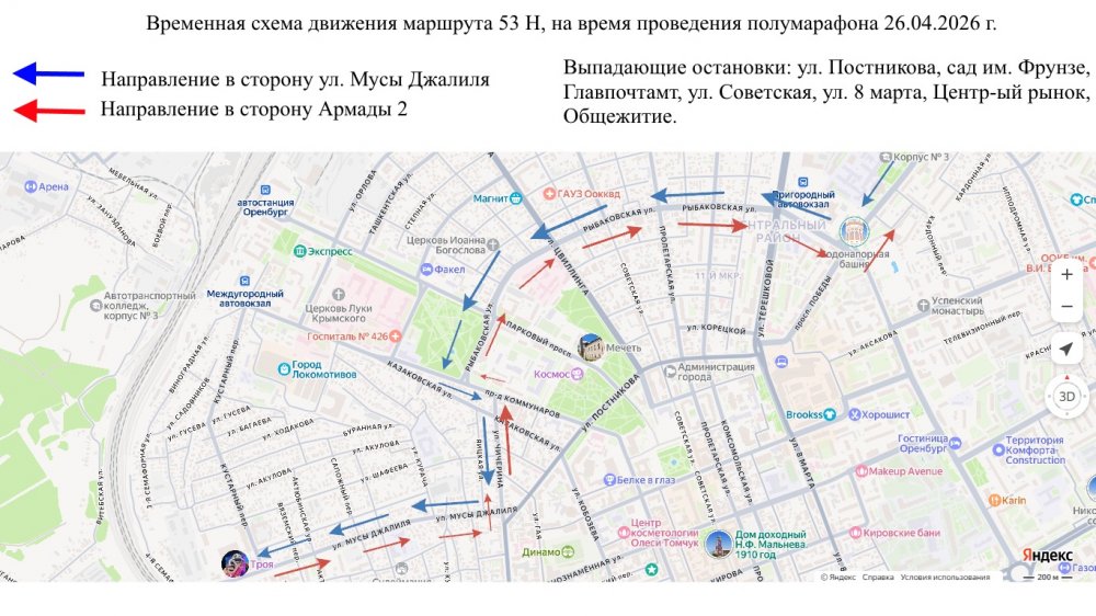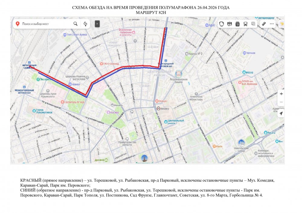 Изменение схемы движения общественного транспорта на 26 апреля от администрации города Оренбурга