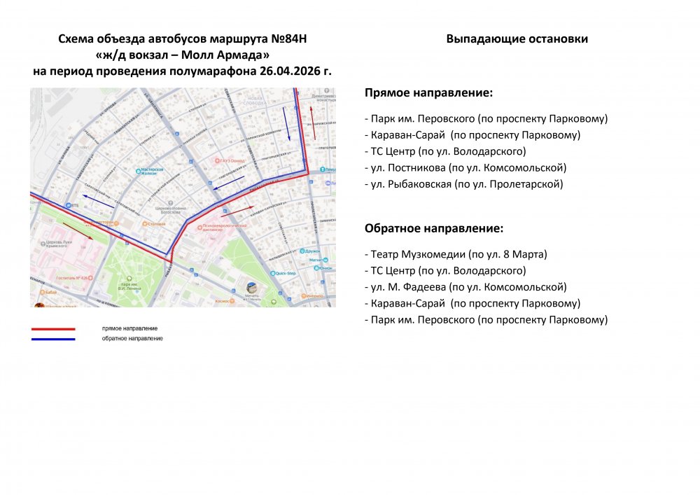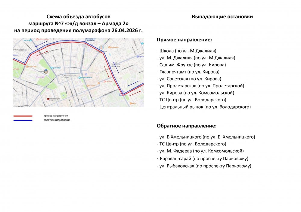 26 апреля маршруты общественного транспорта будут изменены на следующих маршрутах: № 80, 21, 12, 10, 7, 6, 4, 2, 84Н, 83Н, 82Н, 69Н, 68Н, 66Н, 63Н, 53Н, 57Н, 52Н, 101.