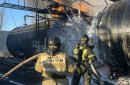 В Оренбурге на улицен Донгузской воспламенились цистерны с нефтепродуктами. Тушение пожара производится силами МЧС.